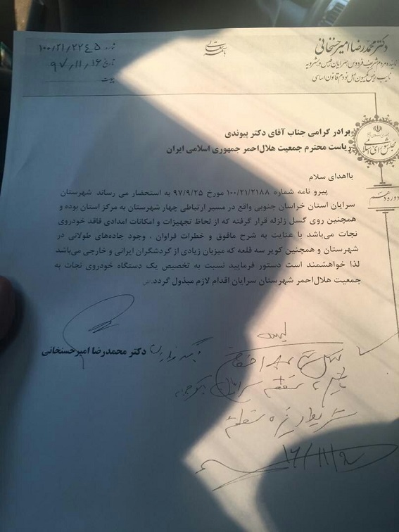 دیدار جناب آقای دکتر امیرحسنخانی با دکتر پیوندی ریاست هلال احمر کشور و گرفتن 6 میلیارد ریال اعتبار برای تجهیزات و دیوار کشی و محوطه ساختمان هلال احمر سرایان تخصیص ماشین ست هلال به ارزش 10میلیارد ریال برای شهرستان سرایان