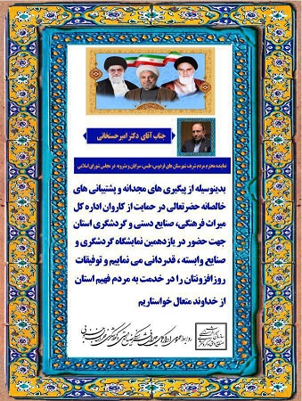 تقدیر اداره کل میراث فرهنگی خراسان جنوبی از دکتر امیرحسنخانی بابت حمایت از کاروان استان جهت حضور در نمایشگاه گردشگری