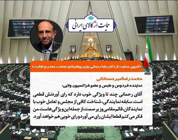 حمایت دکتر امیرحسنخانی از دکتر رضا رحمانی،وزیر پیشنهادی صنعت،معدن،تجارت
